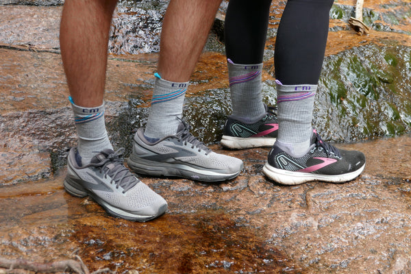 Climatesox are knitted with small loops at the top of each sock which can be connected with a tiny plastic link. The links make it easy to connect sock mates so that they stay together in the laundry process while allowing the entire garment surface to be cleaned. No more mate loss or sock sorting. No more time wasted, or money lost from lost mates. The linking system also allows the socks to be hang-dried, by passing the energy intensive drier and preserving the elastic yarns used in socks, which drier heat can gradually degrade. The time saved could then be productively used by hanging out the rest of your laundry, on an indoor/outdoor folding rack, saving 3 to 6kwh of energy per load.